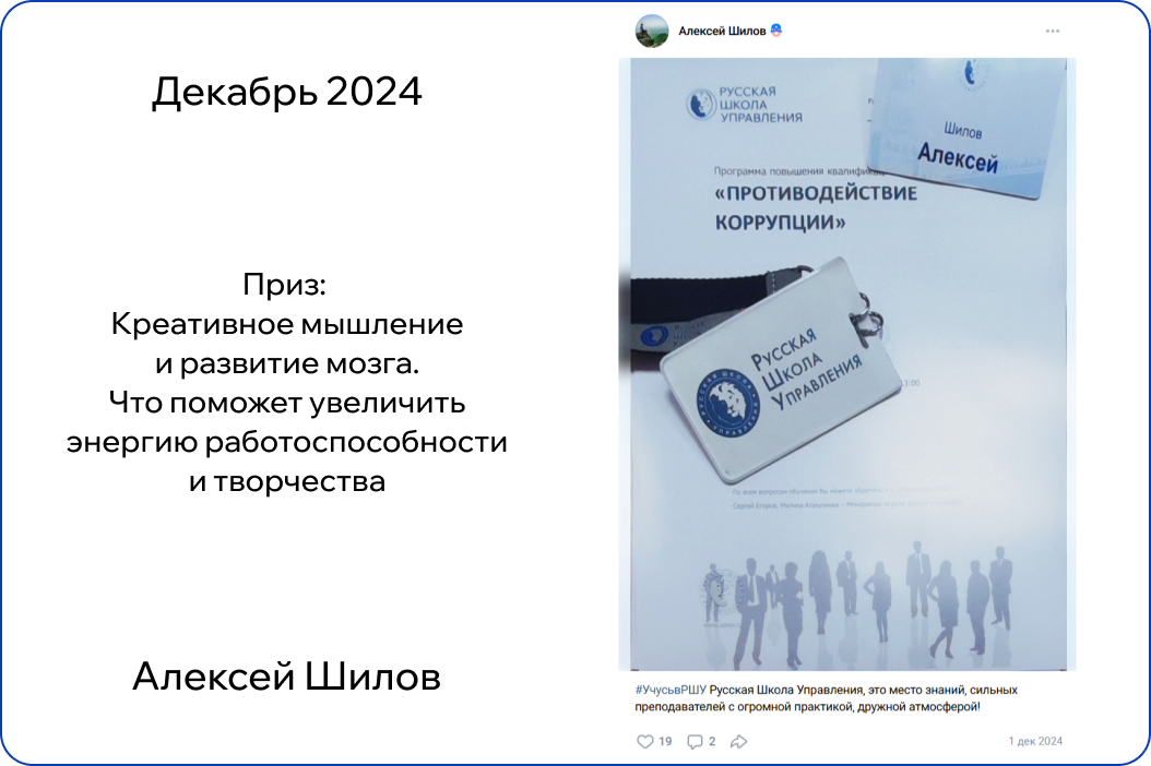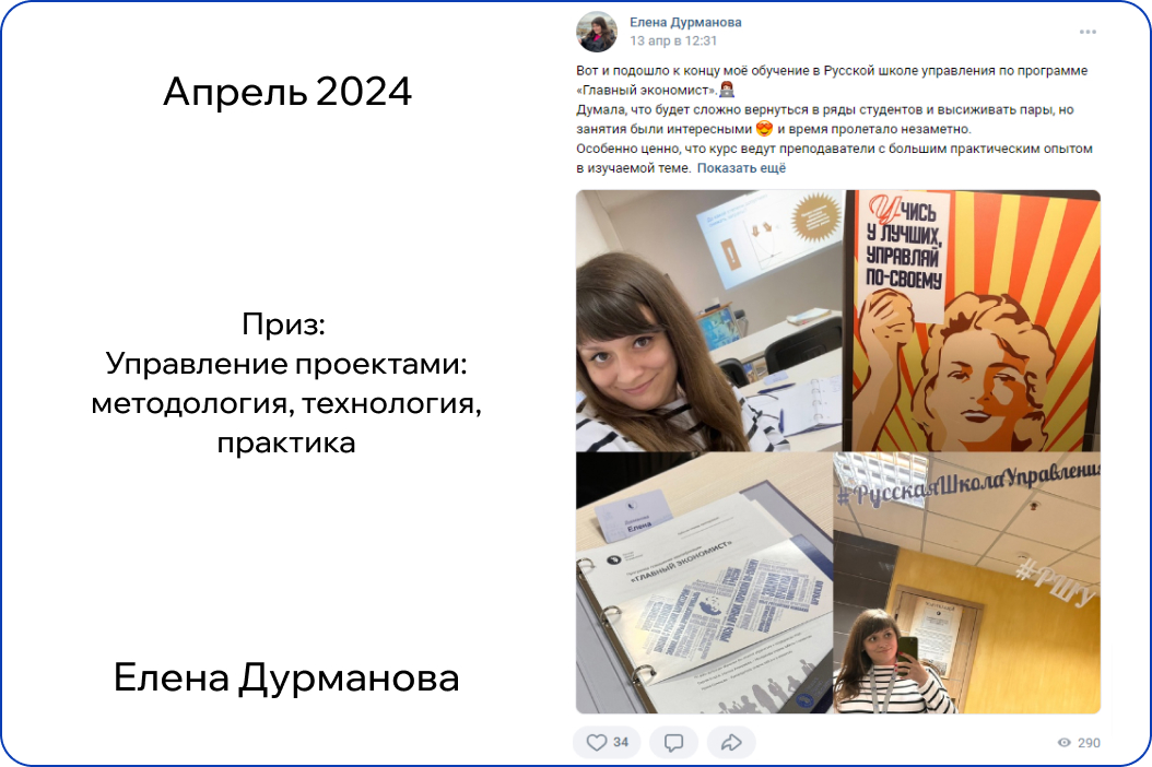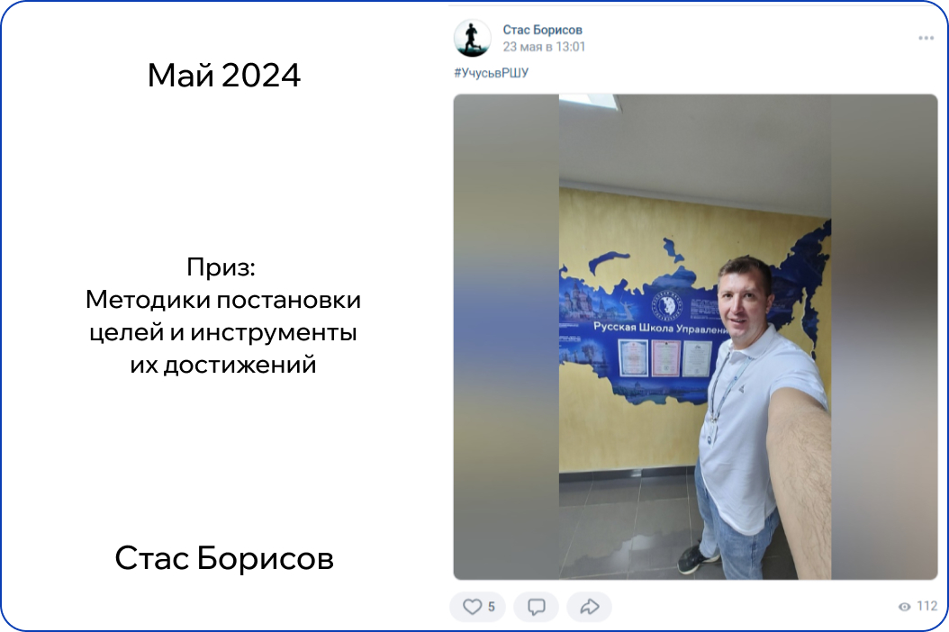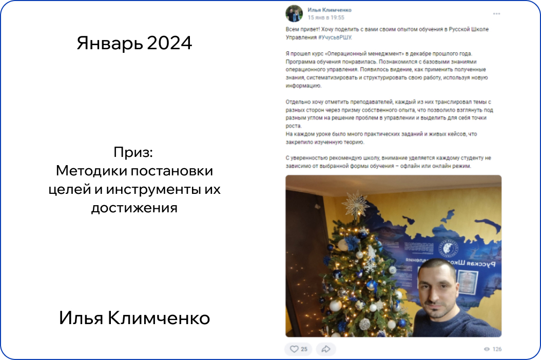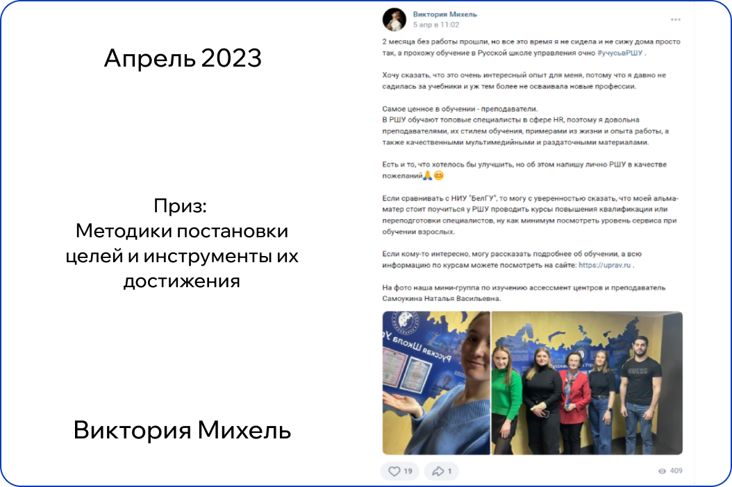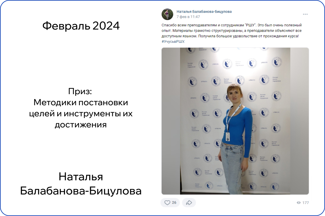*В конкурсе принимают участие только действующие участники обучения. Итоги публикуются на странице Русской Школы Управления в ВК в первый понедельник месяца.