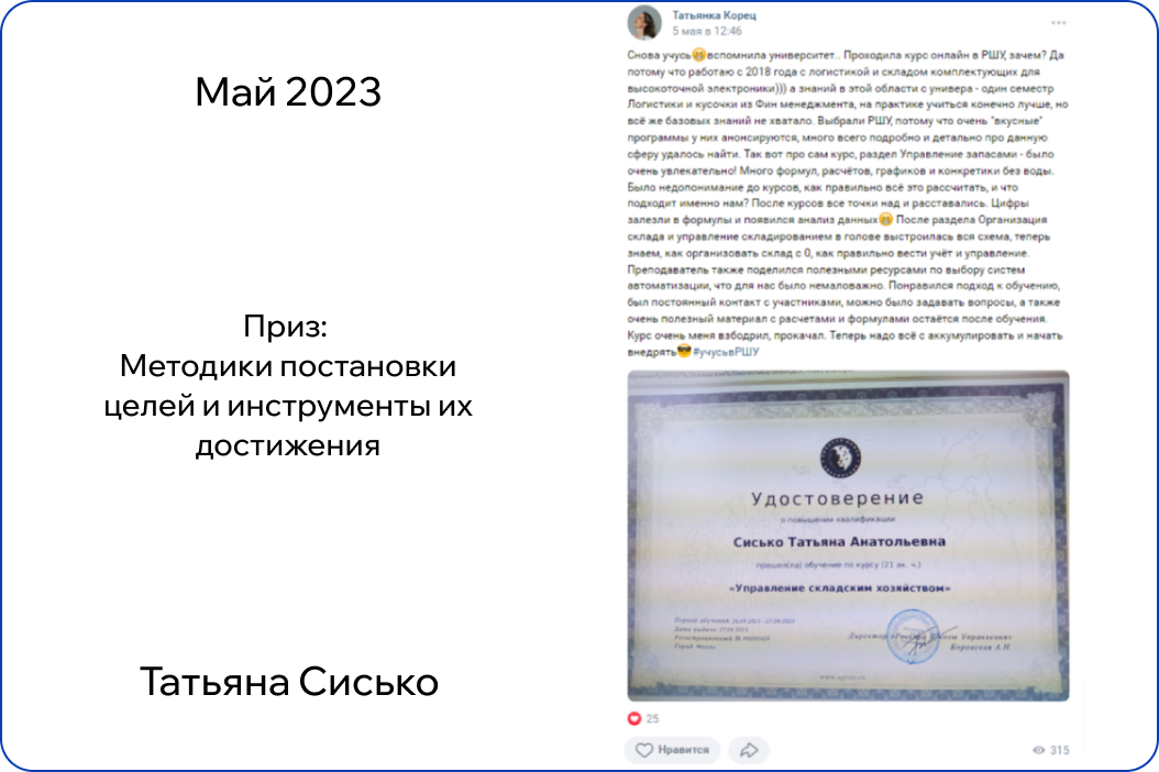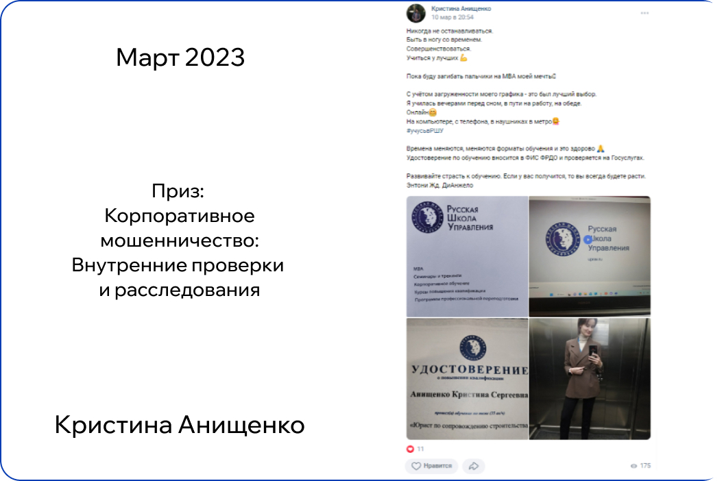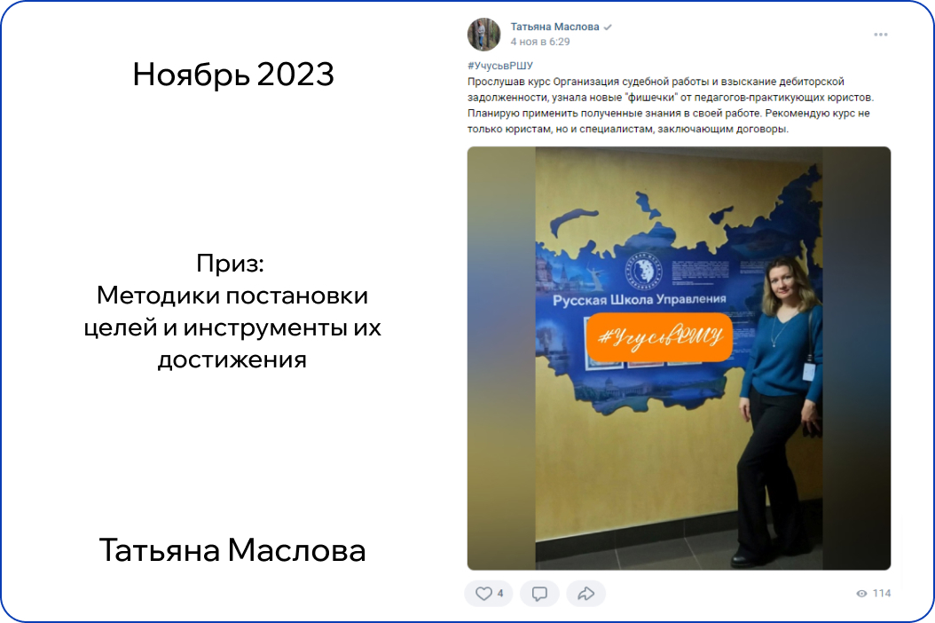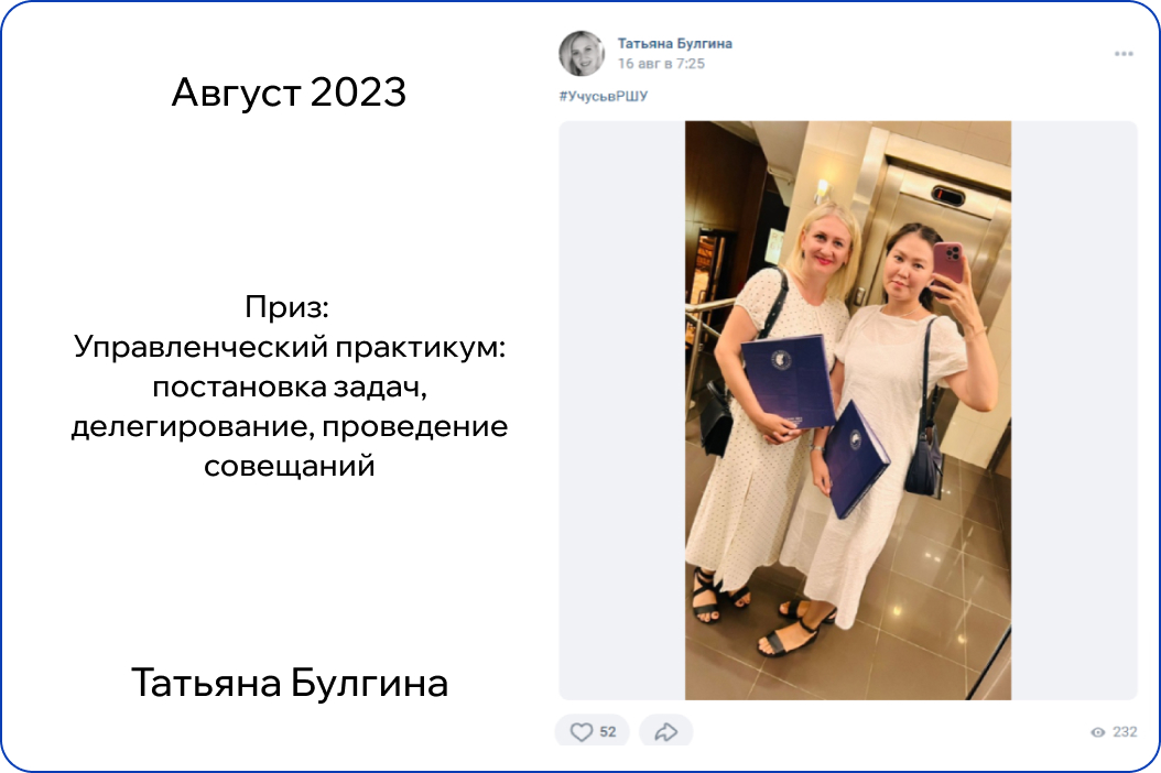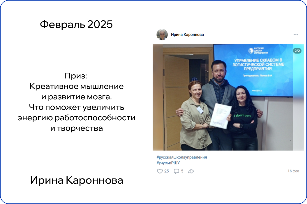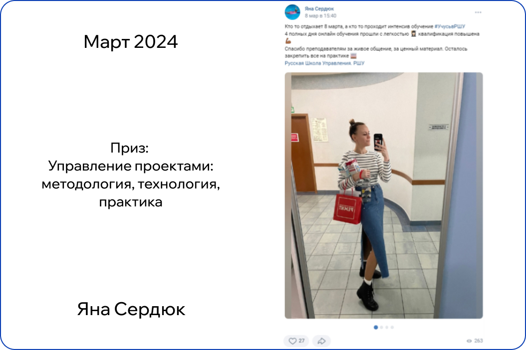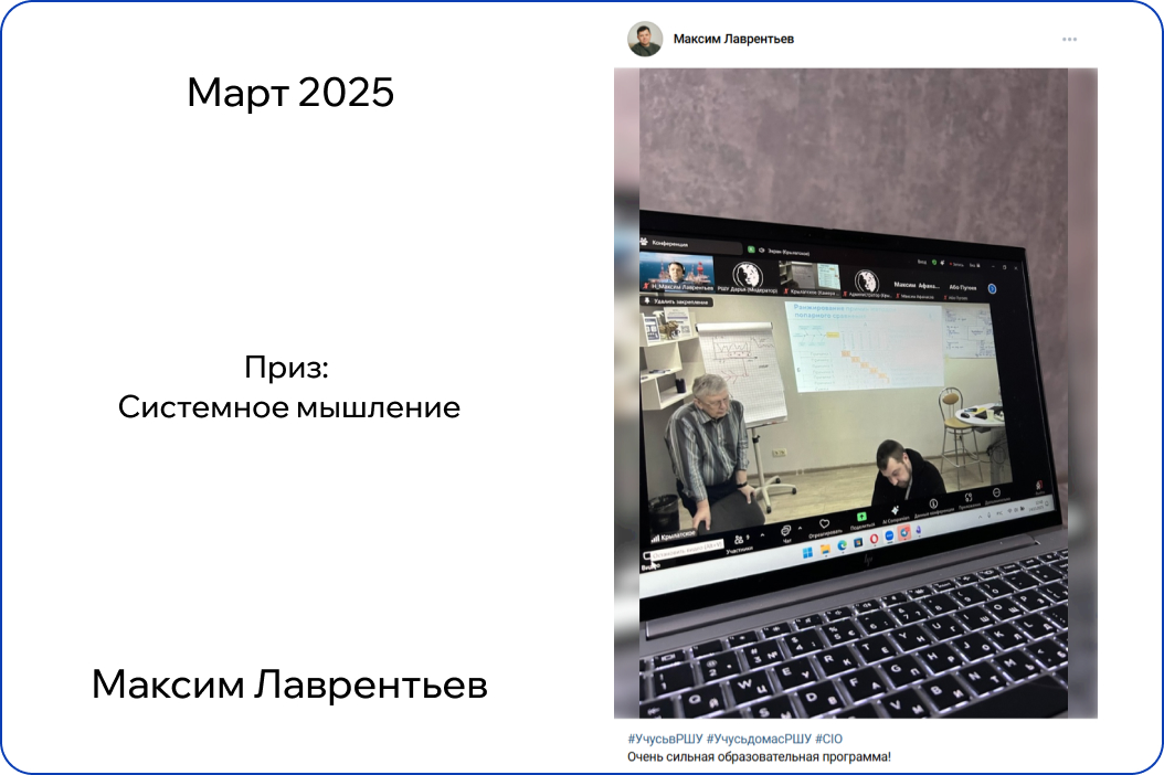 *В конкурсе принимают участие только действующие участники обучения. Итоги публикуются на странице Русской Школы Управления в ВК в первый понедельник месяца.