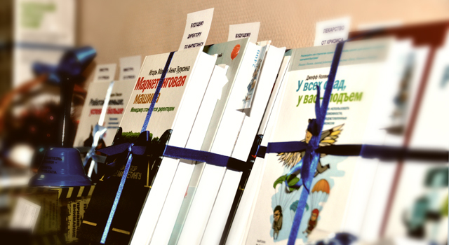 «Будущему миллионеру», «Чемоданчик маркетолога», «Витамины личностного роста», «Микстура от стресса»- такие «красноречивые» наборы из книг можно было приобрести в перерывах между занятиями. Слушатели с удовольствием покупали подарки себе, друзьям и коллегам.